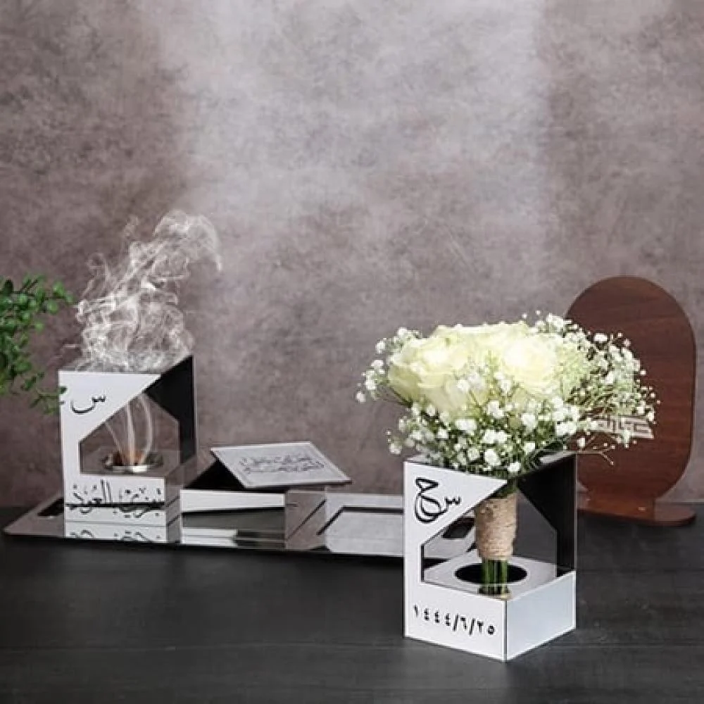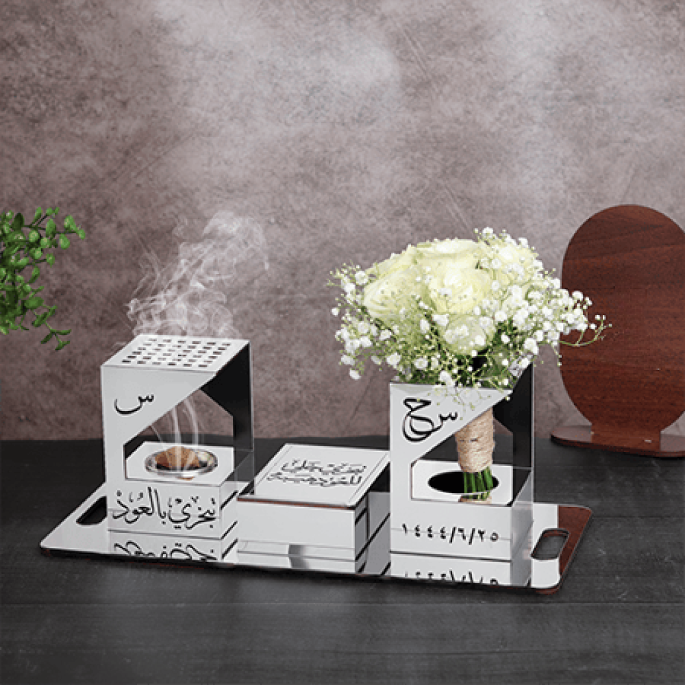 - صينية تحمل المبخره والصندوق ومسكة الورد.